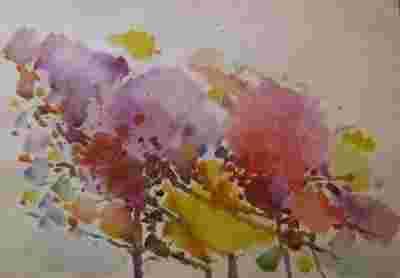 ABSTRAKCJA pejzaż DRZEWA - akwarela 23x32cm 1990r