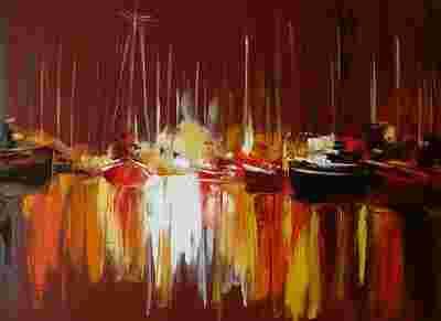 ABSTRAKCJA Z ŁÓDKAMI 1 - olej - 50 x 70_ ŁAZ