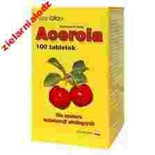 Skład: Acerola (łac. Malpighia glabra) - to odmiana wiśni rosnąca w Ameryce Południowej, głównie w Brazylii. Owoce tej rośliny uznane są za najbogatsze na świecie źródło naturalnej witaminy C i flawonoidów stabilizujących witaminę C czyli hamujących jej rozkład (utlenianie).
