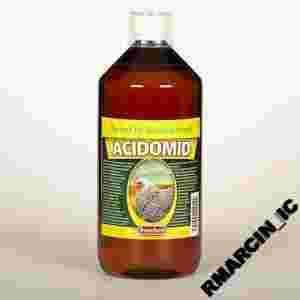 Dodaje się do wody pitnej w proporcji 10ml na 1l wody. Zaleca się stosować ACIDOMID codziennie przez cały rok. Równolegle zaleca się podawać płyn OPTIMIN, który uzupełnia dietę w składniki mineralne.