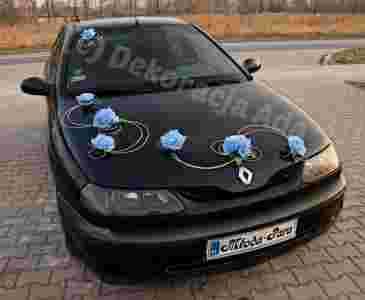 ADA dekoracja auta samochodu niebieskie róże ślub