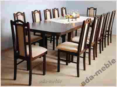Stół WP-8 wykonany z drewna bukowego, blat stołu z płyty MDF - są to płyty powstające w wyniku sprasowania w warunkach wysokiego ciśnienia i temperatury włókien drzewnych z dodatkiem organicznych związków łączących i utwardzających. Wysoka jakość, szerokie zastosowanie praktyczne. Blat PROSTOKĄT ZAOKRĄGLONY OKLEINA NATURALNA -rozkładany. Podstawa wykonana z drewna bukowego.