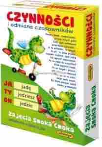 Opis produktu:Układanka edukacyjna: Czynności i odmiana czasowników.Pewien Smok, sympatyczny,proszę miłych gościCały czas wykonywałprzeróżne czynnościA to wchodził, to biegał,to pił, to znów pływał,Czasem siedział, spał sobielub wprost odpoczywał.Po co robił to wszystko?Ktoś zapytać może.Po co biegał i pływał,gdy zimno na dworze?Ano, po to to robił,moje małe smyki,By Wam właśnie umilićnaukę gramatyki!Zawartość pudelka:36 dwustronnych tafelków z czasownikami, dwustronna plansza, 24 duże dwustronne tafelki o wymiarach 7,4x7,4 cm.Gra przeznaczona:dla 1 do 6 graczy w wieku od 6 lat.