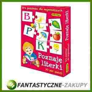 Jeśli chcesz nauczyć swoje dziecko alfabetu sięgnij po grę edukacyjną Poznaję literki. Gra puzzlowa jest skutecznym sposobem dydaktycznym, dzięki któremu Twoje dziecko zaznajomi się z podstawowymi literkami. Zestaw zawiera 30 par puzzli i kostkę do gry. Na połowie elementów znajdują się literki, na reszcie są odpowiadające im obrazki. Poprzez kojarzenie obrazków z literkami Twoje dziecko w łatwy sposób opanuje alfabet. Dodatkowo wypowiadając połączone pary czyli litery i wyraz maluch zaznajomi się z fonetyczną wymową liter. Gra polecana jest na etapie nauczania początkowego, w domu i szkole. Zestaw gry zawiera: 30 par puzzli, kostkę do gry.