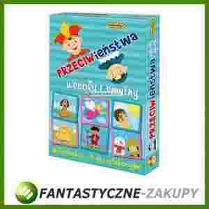 WESOŁY I SMUTNY przeciwieństwa zestaw edukacyjny Zadaniem uczestników zabawy jest odnalezienie, a później nazwanie 24 przeciwieństw. W środku pudełka znajduje się instrukcja z opisem czterech emocjonujących gier, w które można grać zarówno w gronie rodzinnym jak i przedszkolu. Zestaw, w większych grupach, może także służyć jako układanka, na podstawie której nauczyciel w przedszkolu scharakteryzuje i utrwali cech przeciwne przedmiotów i zjawisk.Gra zawiera 48 dużych, sztywnych kartoników.