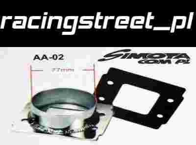 Adapter umożliwiający podłączenie rury dolotowej 77mm do przepływomierza. Wykonany z aluminium, gumowa uszczelka w zestawie