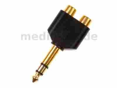 Adapter Jack 6,3mm wtyk - 2x RCA gniazdo - gold