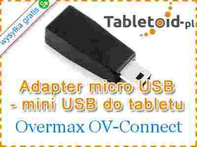 Adapter ten pasuje doskonale do tableta Overmax OV-Connect, jak i do wielu innych tabletów wyposażonych w pasujące gniazdo mini USB. Około połowa tabletów na systemie Android ma wtyk USB tego typu, np. Kiano, Lark, ADAX, Ainol, Apollo, Archos i inne. Jeśli masz wątpliwości, zadzwoń do nas.