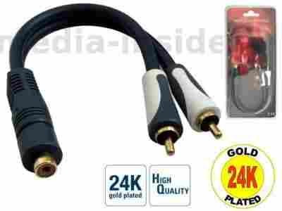 Adapter na kablu 2x RCA wtyk - 1x RCA gniazdo GOLD