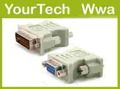 Adapter DVI wtyk / VGA gniazdo umożliwiający podłączenie kabla VGA do portu DVI karty graficznej komputera lub telewizora.