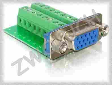 Terminal Block pozwalający na zamontowanie gniazda VGA w zamkniętym urządzeniu np puszka w ścianie, urządzenie amatorskie lub profesjonalne budowanie na zlecenie.