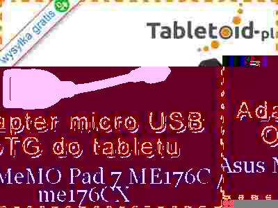 Adapter ten pasuje doskonale do tableta Asus MeMO Pad 7 ME176C / me176CX, jak i do wielu innych tabletów wyposażonych w pasujące gniazdo micro USB. Ponad połowa tabletów na systemie Android ma wtyk USB tego typu, np. Kiano, Lark, ADAX, Ainol, Apollo, Archos i inne. Jeśli masz wątpliwości, zadzwoń do nas.