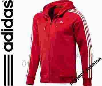Trzy pasy adidasa na rękawach i na kapturze