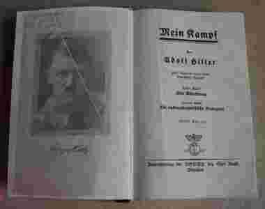 Oryginalne niemieckie wydanie z odręczną dedykacją burmistrza Brandenburgii oraz pieczęcią miejską z 1938 r. Książkę wydało wydawnictwo NSDAP w Monachium. Wydanie ekskluzywne , grzbiet tłoczona skóra ze złoceniami, kremowy papier, druk gotycki. Wymiary książki ok. 13x19 cm. Z przodu książki zdjęcie z podpisem Hitlera, przełożone przeźroczystą kalką. Wstęp numerowany rzymskimi liczbami do XXVI, następnie jest 781 stron ora kilkanaście stron, reklam wydawniczych głównie nazistowskich. Stan książki prawie bardzo dobry. Okładka i grzbiet maja kilka przetarć, wewnątrz mogą zdarzyć się zagięcia czy też lekkiego wypaczenia papieru.