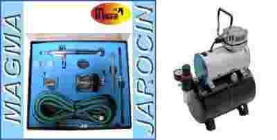 - kompresor z butlą 3L wraz z aerografem TG134K z dyszą 0,5 , 0,3 i 0,2 oraz iglicami