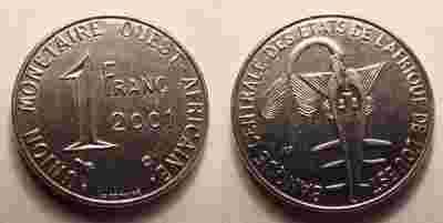 Afr. Unia Monetarna, 1 frank, 2001 r.