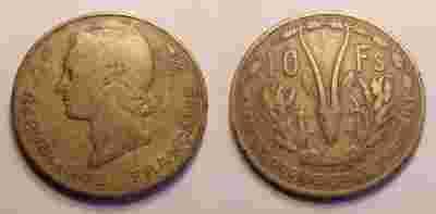 Afrykańska Kolonia Francuska, 10 franków, 1956 r.