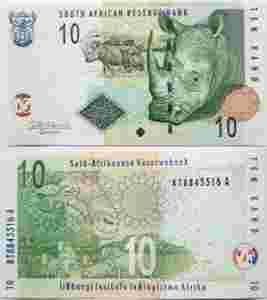 AFRYKA 10 RAND 2009 P 128 b UNC NOSOROŻEC