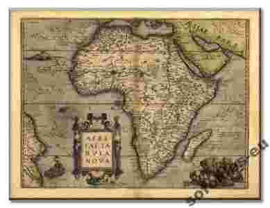 Mapa Afryki w edycji Abrama Orteliusa. Mapa ta znalazła się w pierwszym nowożytnym atlasie świata: "Theatrum Orbiss Terarum." Oryginał był wydany w 1587 roku w Antwerpii. Ta mapa miała decydujący wpływ na przedstawienie Afryki w kartografii. Mapa ozdobiona dekoracyjnym kartuszem tytułowym.