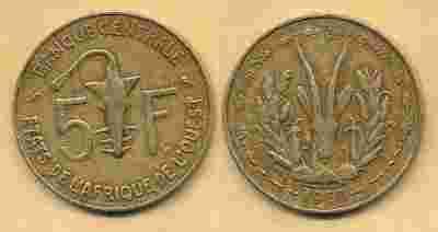 Afryka Zachodnia 5 Francs - 1969r ... Monety