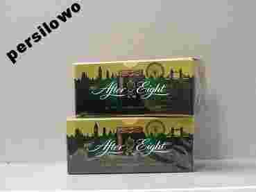 Wyśmienite czekoladki AFTER EIGHT z wyjątkowym, miętowym nadzieniem znajdą uznanie najbardziej wymagających koneserów. Słodkie miętowe nadzienie oblane deserową czekoladą, kazda z czekoladek osobno zapakowana