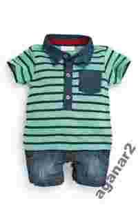 aganar2 NEXT 897-035 POLO ROMPER GREEN HIT 6-9 MC