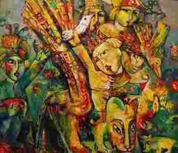 Wasyl Martynczuk, pochodzący z regionu Rouna na Ukrainie artysta żyje i pracuje na stałe w Grodnie na Białorusi. Z regionów tych czerpie inspiracje- widać ją w stylistyce prac malarskich, tematyce, kolorystyce.
