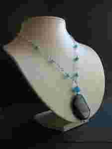 Agat barwiony niebieski - srebrny łańcuszek