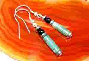 Oryginalne kolczyki wykonane z agatu mszystego, hematytów i onyksów.