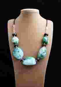 AGAT ZIELONY HEBAN SREBRO RZEMIEN NASZYJNIK