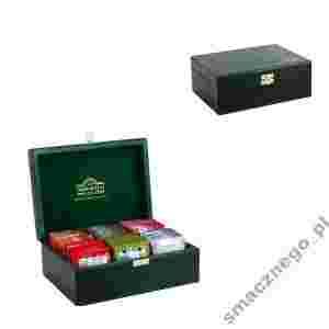 * Opakowanie: drewniane pudełko, 60 torebek herbaty w aluminiowych kopertach (6 smaków po 10 torebek każdy).