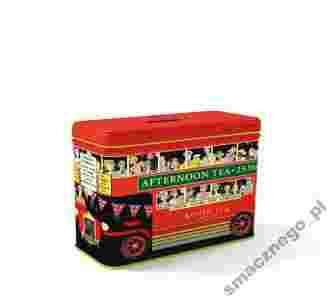 OPIS: Urocza puszka o charakterystycznym kształcie londyńskiego czerwonego autobusu wypełniona szlachetną angielską herbatą popołudniową Elnglish Afternoon.