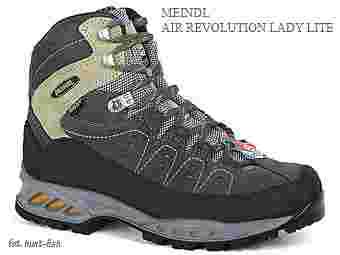 Air Revolution Lady Lite – damskie buty trekkingowe o uniwersalnym zastosowaniu - posiadają wymienną wkładkę Air-Active® nowatorską podeszwę Meindl Multigriff 2 firmy Vibram® z systemem amortyzacji wstrząsów, element amortyzujący widoczny w podeszwie oraz dodatkowe zabezpieczenie przed przemakaniem w postaci membrany Gore-Tex® - buty nieprzemakalne a zarazem „oddychające”.