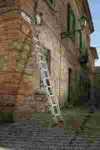 Akala 150.1 DRABINA PRZYSTAWNA wysokość robocza 350 cm. Długość drabiny 300 cm. Szerokość 42 cm. 10 stopni. Stopień głębokości 8 cm. Ostatni element wysuwany wyposarzony w stopnie głebokości 8 cm.