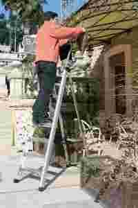 Profesjonalna drabina aluminiowa. Wysokość robocza 267 - 380 cm. Bardzo wytrzymały stopień o szerokości 8 cm zamocowany z wykorzystaniem opatentowanej technologii lotniczej zapewnia trwałe mocowanie stopni bez spawania. Wyposażona w antypoślizgowy stalowy podest i ergonomiczną poręcz oraz wygodną i wytrzymałą torbę na narzędzia. Wysokiej jakości samoblokujące się kółka. Opcjonalnie możliwość montażu dodatkowej poręczy.