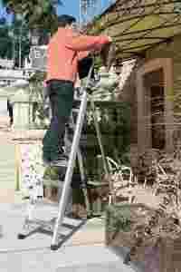 Profesjonalna drabina aluminiowa. Wysokość robocza 267 - 380 cm. Bardzo wytrzymały stopień o szerokości 8 cm zamocowany z wykorzystaniem opatentowanej technologii lotniczej zapewnia trwałe mocowanie stopni bez spawania. Wyposażona w antypoślizgowy stalowy podest i ergonomiczną poręcz oraz wygodną i wytrzymałą torbę na narzędzia. Wysokiej jakości samoblokujące się kółka. Opcjonalnie możliwość montażu dodatkowej poręczy.