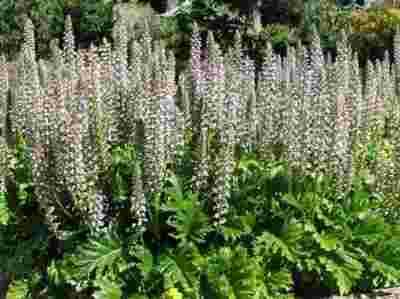 Ma ogromne, grube szkliste , pięknie powcinane liście - z ponad których latem wyrastają okazałe kwiatostany.Właśnie te liście od wieków miały zastosowanie jako motyw dekoracyjny .