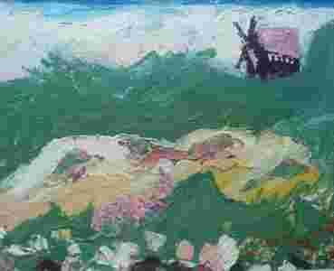 AKRYL NA PŁÓTNIE 24 x 19 cm "WIATRAK"