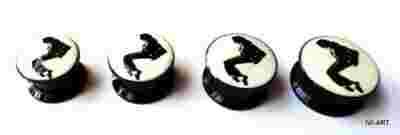 Plug ma odkręcaną ściankę, co ułatwia jego zakładanie. Wymiary : grubość 18mm, wysokość 5mm, średnica zewnętrzna ścianki z motywem - 22mm. Jest to czwarty plug od prawej ze zdjęcia zamieszczonego poniżej.