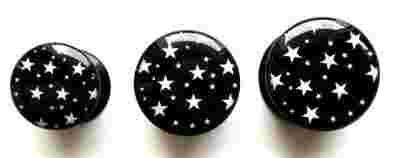 Akrylowy plug - 20mm - CZARNY W BIAŁE GWIAZDKI