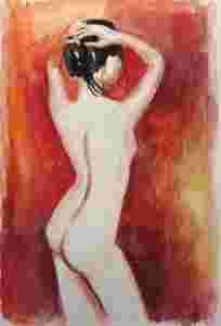 akt czerwony, sygnowany