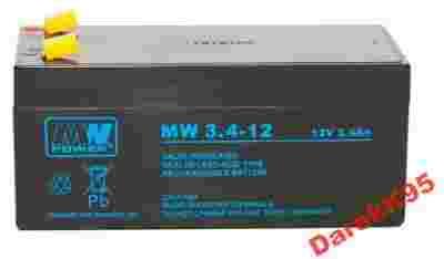 Akumulator MW3,4-12 3,4Ah 12V - nowy z gwarancją - promocja cenowa!!! To uniwersalny akumulator np. do echosondy, skrzynki startowej, bez problemu zasila rozrusznik i panel startowy (RC), kasy fiskalnej i do wielu innych zastosowań. Bateria żelowa w technologii AGM, szczelna, bezobsługowa o projektowej żywotności 5 lat, pracująca w każdej pozycji (jedyna niezalecana to końcówkami do dołu);
