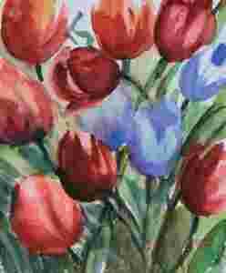 Akwarela 13 x 11 cm tulipany Sabina Salamon