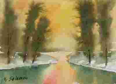 Namalowana na profesjonalnym, grubym papierze wysokiej jakości akwarelami.