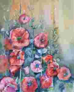 Akwarela 30 x 38 cm kwiaty malwy K.Konieczny