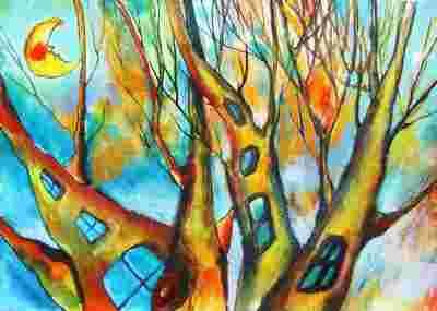 Akwarela A4 ________ "Leśne domki"
