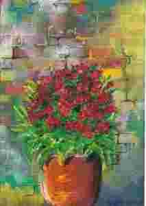 Akwarela " donica przy murze".20x 15.