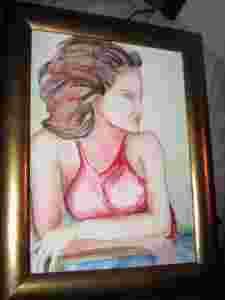 Akwarela "Dziewczyna" w złoconej ramie