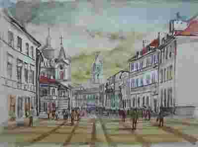 Przedmiotem niniejszej aukcji jest akwarela ".Lublin- Krakowskie Przedmieście."