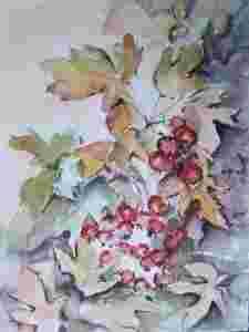 Akwarela Obraz Kwiaty Gałązka głogu